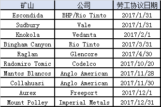 2017年全球主要铜矿薪资谈判日期