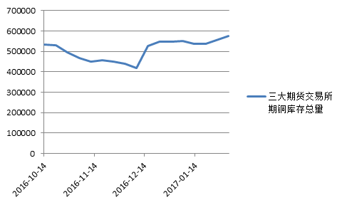 10月份以来全球三大期货交易所期铜库存总量变化情况