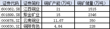A股主要铜矿上市公司产能及储量情况
